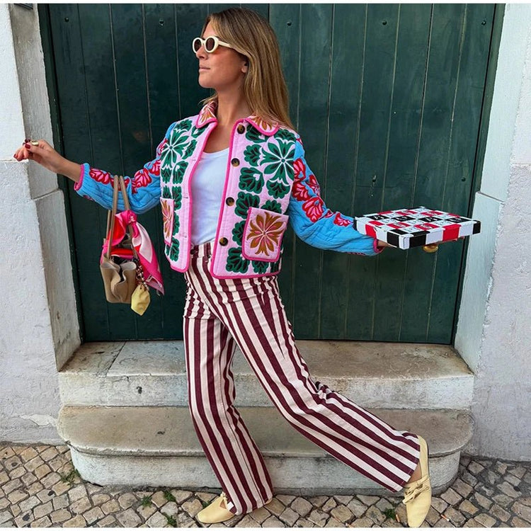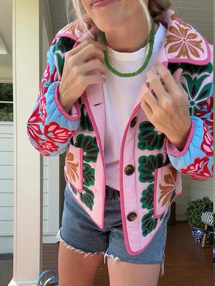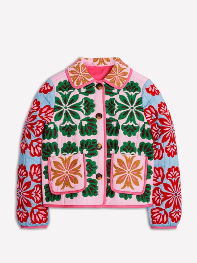 Vintage Floral Quilted Jacket Lapel Button-Up — Cottagecore Y2K Outerwear